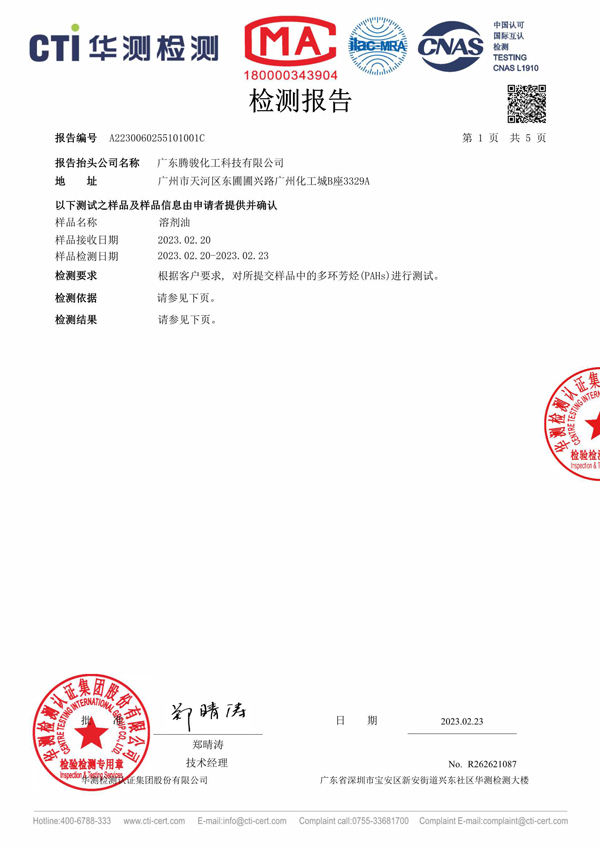 廣東騰駿化工:200溶劑油檢測報告